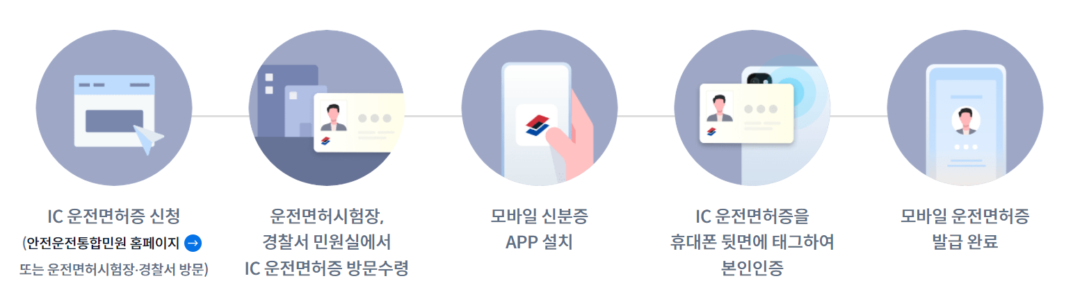 IC 운전면허증 소지자라면 스마트폰에서 IC 운전면허증 태그 및 본인 인증을 하여 재발급이 가능하며, 기존 운전면허증 소지자라면 운전면허시험장을 방문하여 신청서를 작성하여 제출 후 창구에서 QR코드로 재발급이 가능합니다.