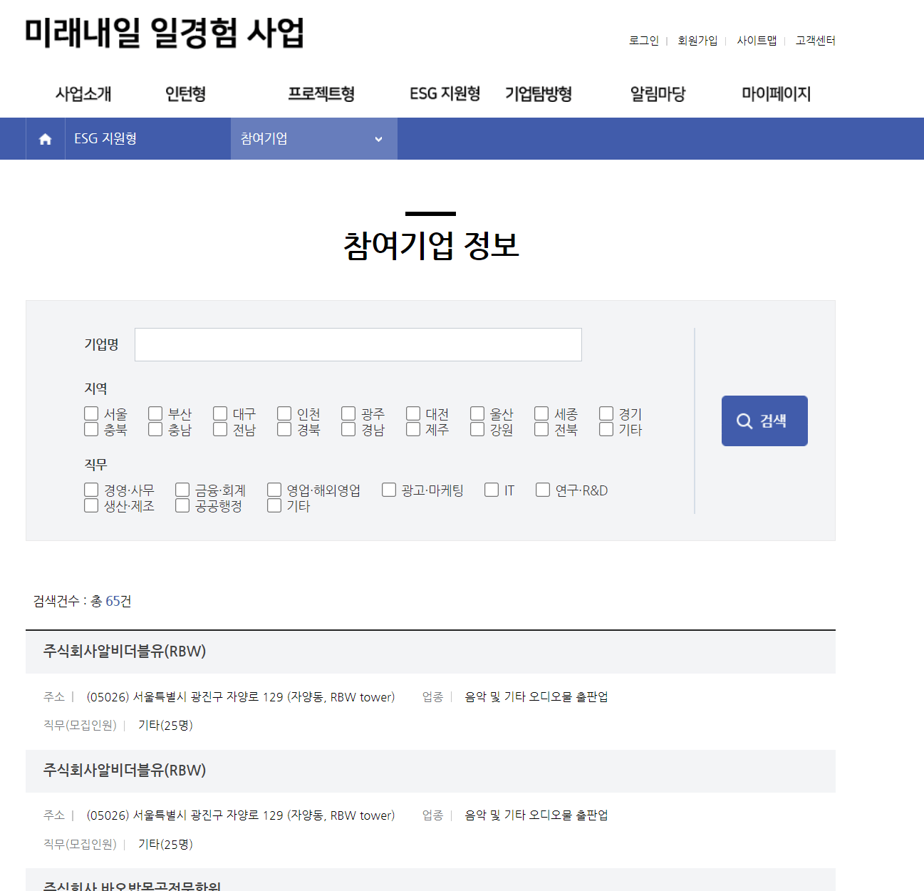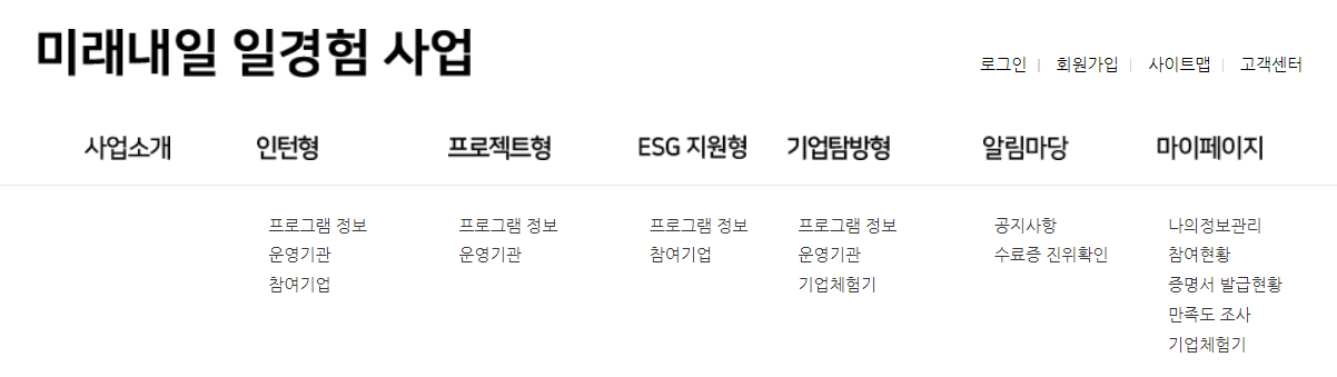 미래내일 일경험 사업 홈페이지 접속 후 로그인합니다.