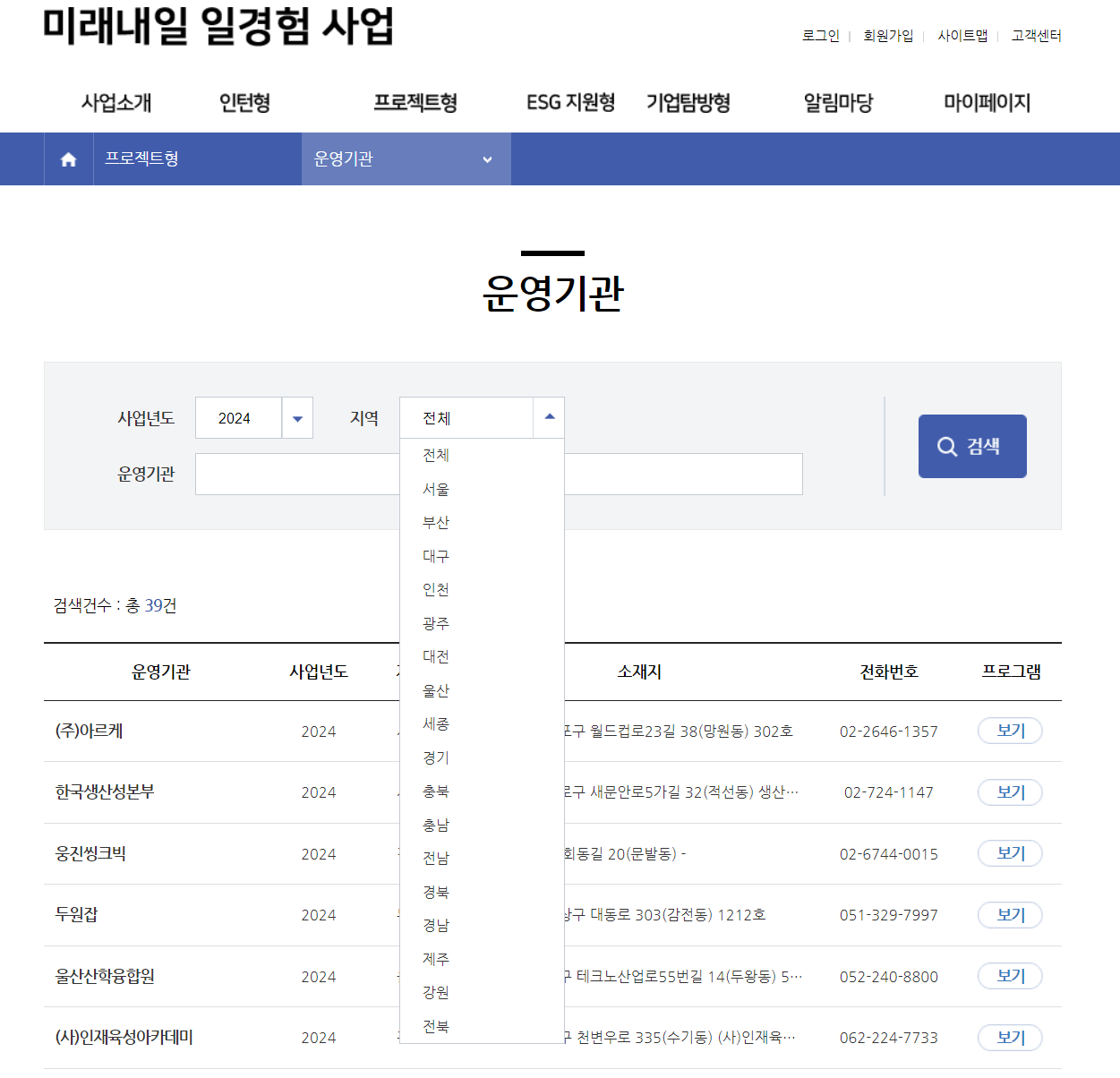 운영 기관별 프로그램에는 지역별 운영기관 별로 확인할 수 있으니 확인하고 신청하면 됩니다.