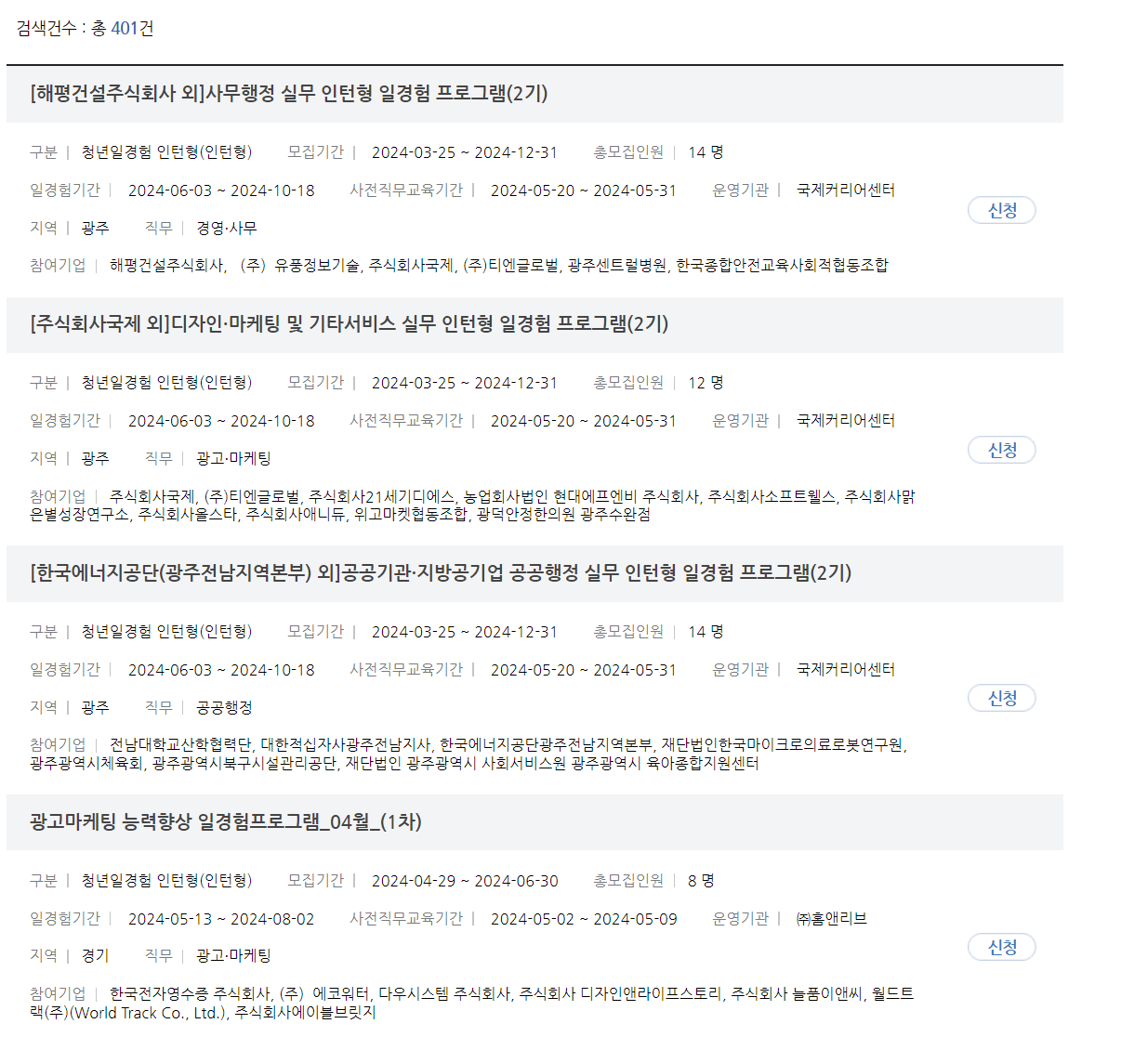 미래내일 일경험 사업은 희망하는 분야의 일을 직접 경험 해 볼수 있으니 직무가 적성에 맞는지 미리 알 수 있어서 취업을 했을 때 직무 만족도도 높아지고 퇴사률도 낮다고 합니다. 미래내일 일경험 사업 프로그램을 수료하면 수료증도 발급된다고 하니 지원금도 받고 직무 경험도 쌓을 수 있게 신청해보시기 바랍니다.